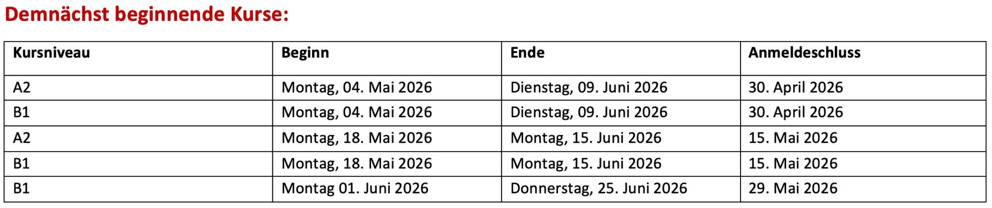 Sprechen Sie uns gerne an – wir beraten Sie persönlich und finden den passenden Kurs für Ihr Niveau und Ziel.